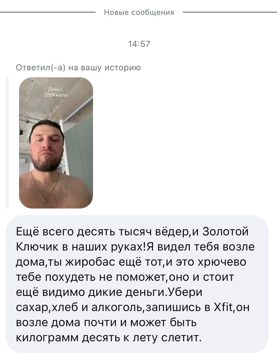 Немного. Для себя. Я никогда не был худым. И если честно меня всегда вполне устраивало моё тело. У меня нет комплексов. Я не воюю с отражением в зеркале. Я просто решил стать чуть легче для себя, для самочувствия, для дисциплины. Но в ответ я получил комментарий с насмешками, оценками моего тела и «советами», как мне жить. И вот что важно. Меня это не задело. Я взрослый парень, у меня устойчивая психика и понимание, кто я есть. Но я задумался о другом. А если бы на моём месте была ранимая девушка? Или подросток? Или человек, который и так борется с неуверенностью? Люди часто делятся своими слабостями в позитивной форме чтобы получить поддержку, объединиться, посмеяться над собой, стать лучше. А в ответ получают хейт. Одно неосторожное слово может стать триггером. Расстройства пищевого поведения, ненависть к себе, бесконечная гонка за «идеалом», всё это начинается не с диет. А с обесценивания. Мы - это не цифра на весах. Не процент жира. Не отражение в зеркале. Мы - это то,