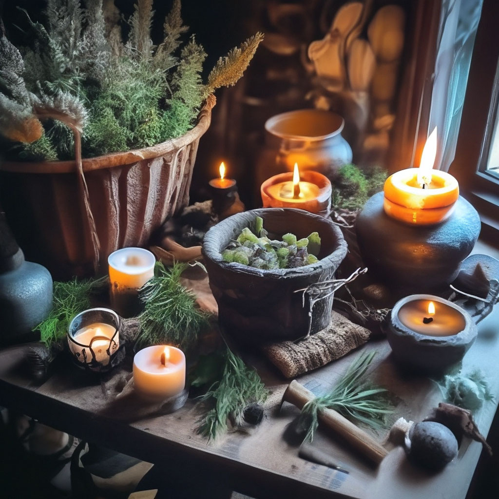 Сначала Таисия взяла несколько веточек сушёного зверобоя и чабреца, бросила их в маленькую глиняную чашу и подожгла от пламени свечи. Травы задымились, наполняя комнату терпким, травяным ароматом, он смешивался с запахом воска и чего то ещё, едва уловимого, словно ветер с далёких лугов.
