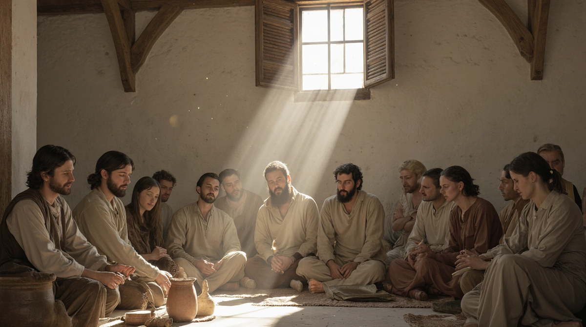 Они вернулись в Иерусалим через те же ворота, что и утром, но город теперь казался другим. Шумная жизнь кипела: торговцы что то выкрикивали, дети бегали между прохожими, римские солдаты лениво болтали в тени портика. Город жил своей жизнью, не подозревая, что на горе Елеонской только что произошло нечто великое. Петр ощутил странное желание: закричать на весь город: «Остановитесь! Вы не понимаете! Он только что был здесь!» Но он молчал. Он не чувствовал силы. Они свернули в узкий переулок, где городской шум сменился ароматами хлеба и сухих трав. Перед ними стоял дом. Тот самый дом, где они ужинали в ночь перед Его смертью, куда Петр прибежал после отречения, залившись слезами, и где двери были заперты из страха перед иудеями, но Он все равно явился, пройдя сквозь стены. Дверь была открыта. Вошедшие увидели, что собравшиеся поднялись им навстречу. Женщины. Мария Магдалина, изгнанная Им семь бесов, стояла у окна. При их появлении она быстро подошла ближе, всматриваясь в лица. Не найдя Е
