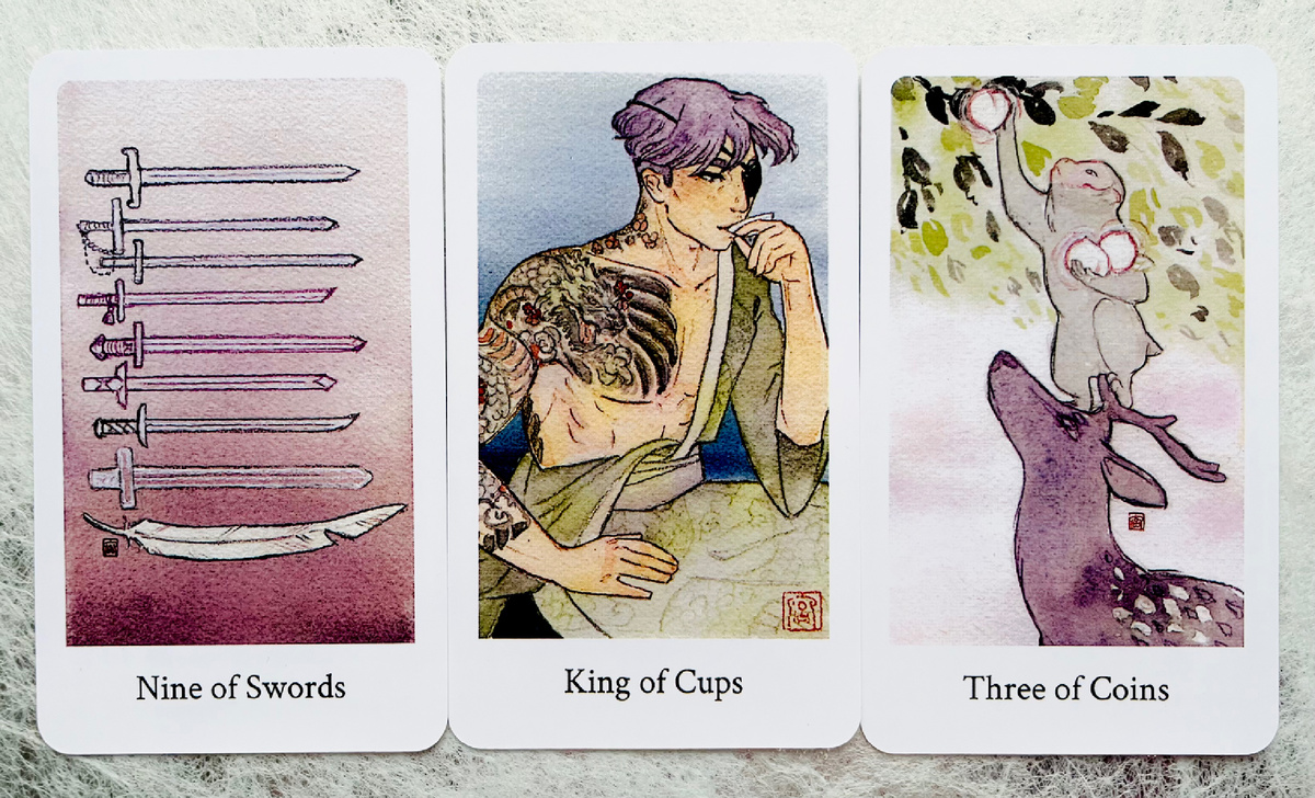Бывают ситуации, когда единственно верное решение – это успокоиться и согласиться взять паузу, перестать сражаться, не сливать энергию. Потому что ваша сложная ситуация должна сама разрешиться в плюс, маятник уже качнулся, скоро к вам вернется удача, которую считали утраченной. И вернется она вместе с человеком, который готов вас оберегать и любить... Карты передают, чтобы вы не тревожились, все сложится благополучно. Сейчас просто оставайтесь в позиции наблюдателя, выждите время. Похоже на то, что сделано всё из возможного. Мечи - как забор, предел, рубеж, на который натыкаешься и чувствуешь боль, ведь результата пока нет, а двигаться дальше нельзя - мешает пространство, обстоятельства, отсутствие ресурсов... Наблюдать - не значит сдаться. Вы не проиграли. В раскладе четко звучит послание: придет помощь, вмешательство кого-то сильного, заботливого, любящего. Король кубков - тот, кто придет в вашу жизнь с добром, кто поможет выйти из запутанной ситуации. Для кого-то это фигура Бога.
