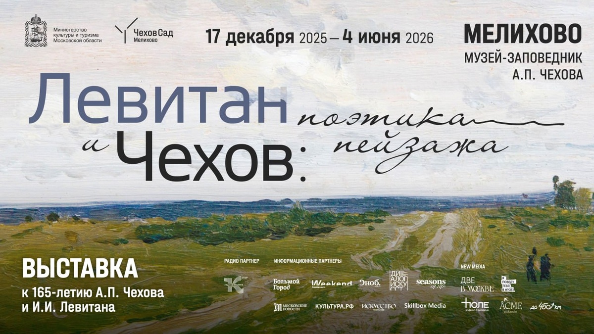 ✨ Уникальная художественная выставка в Мелихово🖼️ На выставке будут представлены ▪️ 24 подлинных этюда Исаака Левитана, среди которых есть как признанные шедевры, так и малоизвестные. 📕🖌️В основе выставки – идея сопоставления творческих методов двух мастеров пейзажа: Левитана – в живописи, Чехова – в литературе. 🤝Два больших художника и два больших друга, они вели диалог не только в жизни, но и в искусстве. *Дети до 6 лет - Бесплатно Выставка работает с 17 ДЕКАБРЯ 2025 по 4 ИЮНЯ 2026 🚫 Возраст: 6+ 🏢 Музей-заповедник А. П. Чехова «Мелихово» 📍 г.о. Чехов, с. Мелихово 💰 Цена от: 220 до 410 ₽ 🔗 Купить билет: https://clck.ru/3Qe7aM ⭐Поддержать канал голосом ✅ Мероприятия Чехов https://dzen.ru/id/66cc4b48e9ef144699238a51 http://vk.com/chekhov_events http://dzen.ru/chekhov_events