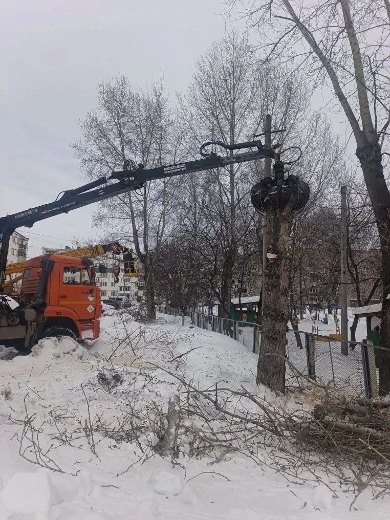 В посёлке продолжается плановый спил аварийных деревьев. Специалисты убирают все старое и опасное.