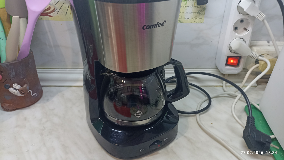 Вчера к нам как раз приехала долгожданная кофеварка, и сегодня утром мы оценили её работу. Скажу я вам, это совсем другой вкус, не сравнить с растворимым. Приятное начало дня задало тон всему утру.