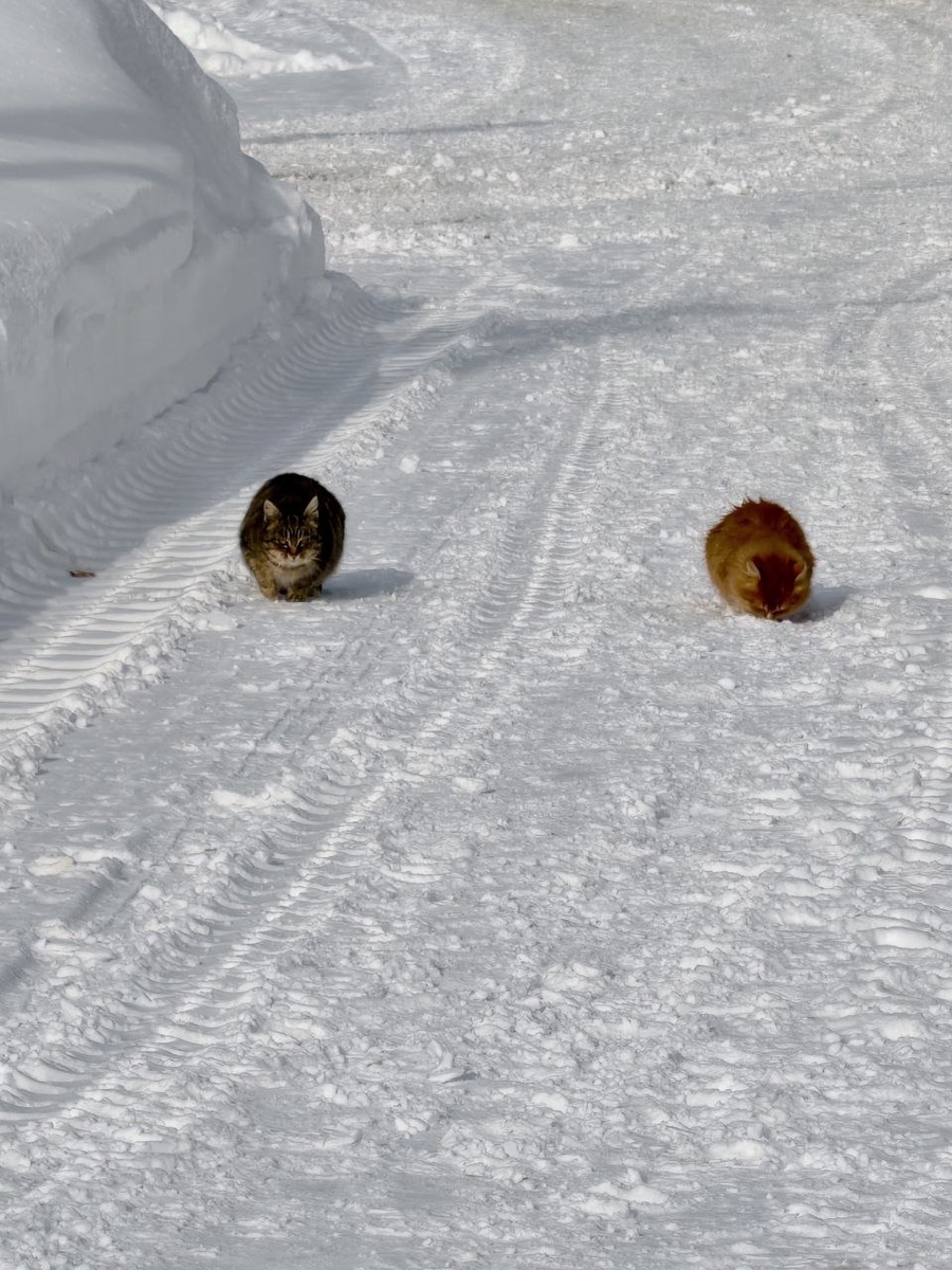 Нас встречали вот такие прекрасные зимние коты!