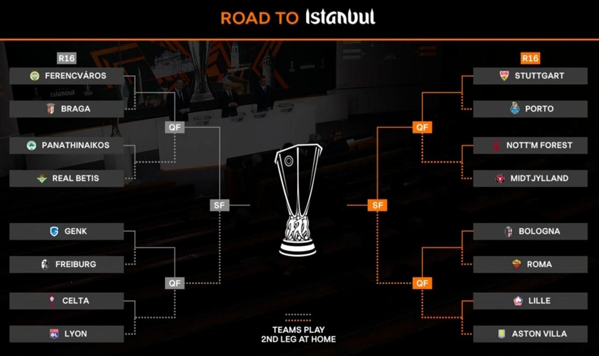 Жеребьевка 1/8 финала Лиги Европы, где Англия представлена "Ноттингем Форест" и "Астон Виллой" 🏆