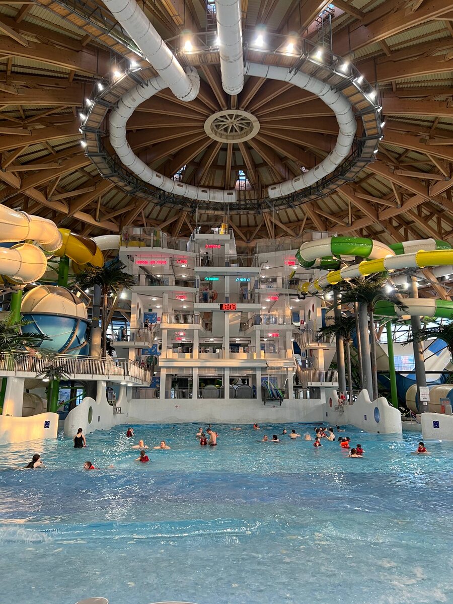 »🛝 Самый большой аквапарк в Сибири! Вот и мы посетили этот аквапарк. Мы взяли абонемент на 5 часов за 4500 рублей на человека, так как до этого мы целый день провели в «Мира Термы» и уже достаточно отмокли. Поэтому безлимит не стали брать🙅♂️ В аквапарке целых 13 горок, но я решил сконцентрироваться на самых больших и захватывающих. К счастью, мы попали в самый лучший момент: в будний день не было ни очередей на горки, ни на снаряды для спуска🏖 Кроме того, аквапарк предлагает зоны для релаксации: бани, хамамы и сауны, джакузи и множество бассейнов🏖️ Но, честно говоря, это уже было не так интересно для нас после активного отдыха на горках🎢
