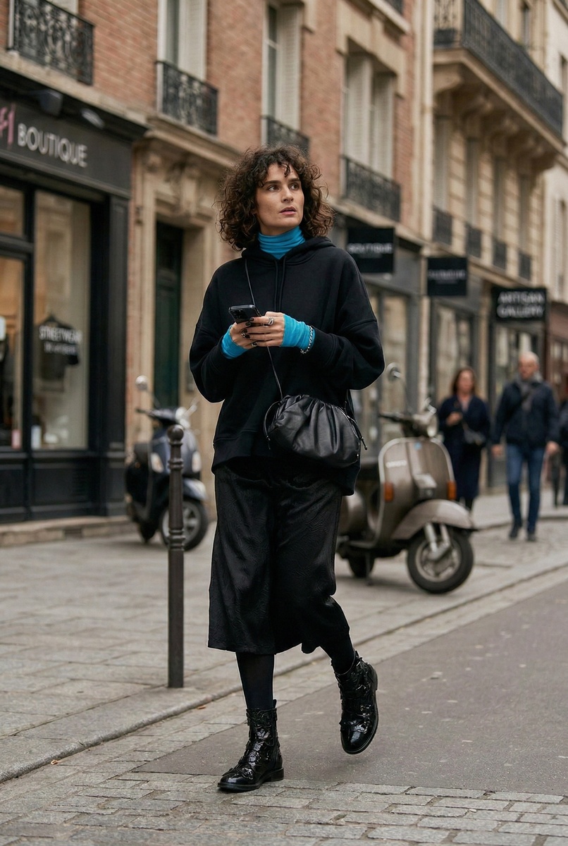 Представьте: сатиновая юбка + объёмный свитер навыпуск = комфорт без компромиссов в стиле.