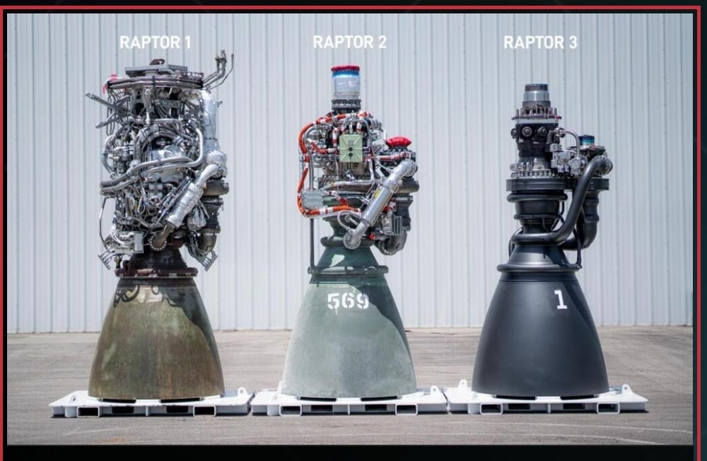 · Тяга Raptor 1 составляла 185 тонн-сил (тс). У Raptor 2 этот показатель вырос до 230 тс. Raptor 3 выдает 280 тс.