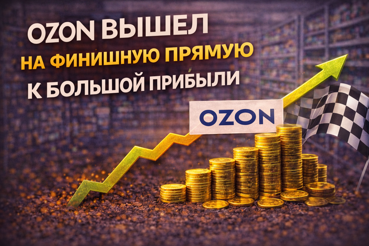 Сегодня компаия МКПАО Озон опубликовала отчет за 12 месяцев 2025 года. Компания завершила год сильно: GMV с учетом услуг вырос на 45%, достигнув 4,16 трлн рублей, выручка увеличилась на 63%, до 998 млрд рублей, а скорректированная EBITDA показала почти четырехкратный рост, поднявшись до 156,4 млрд рублей. При этом компания выходит на чистую прибыль уже третий квартал подряд: в четвертом квартале чистая прибыль составила 3,7 млрд рублей против 2,9 млрд в третьем, а по итогам года убыток сократился до символических 0,9 млрд — фактически компания находится на точке безубыточности. Операционный денежный поток вырос на 76%, до 503,6 млрд рублей, что подтверждает улучшение качества бизнеса. Все это говорит о том, что Ozon переходит от фазы агрессивного роста к фазе повышения рентабельности, делая ставку на финтех, рекламу и услуги — именно сегмент финтеха показал рост выручки на 120% год к году и во многом обеспечил кратный скачок EBITDA. Однако здесь возникают новые риски: ЦБ может ужесточ