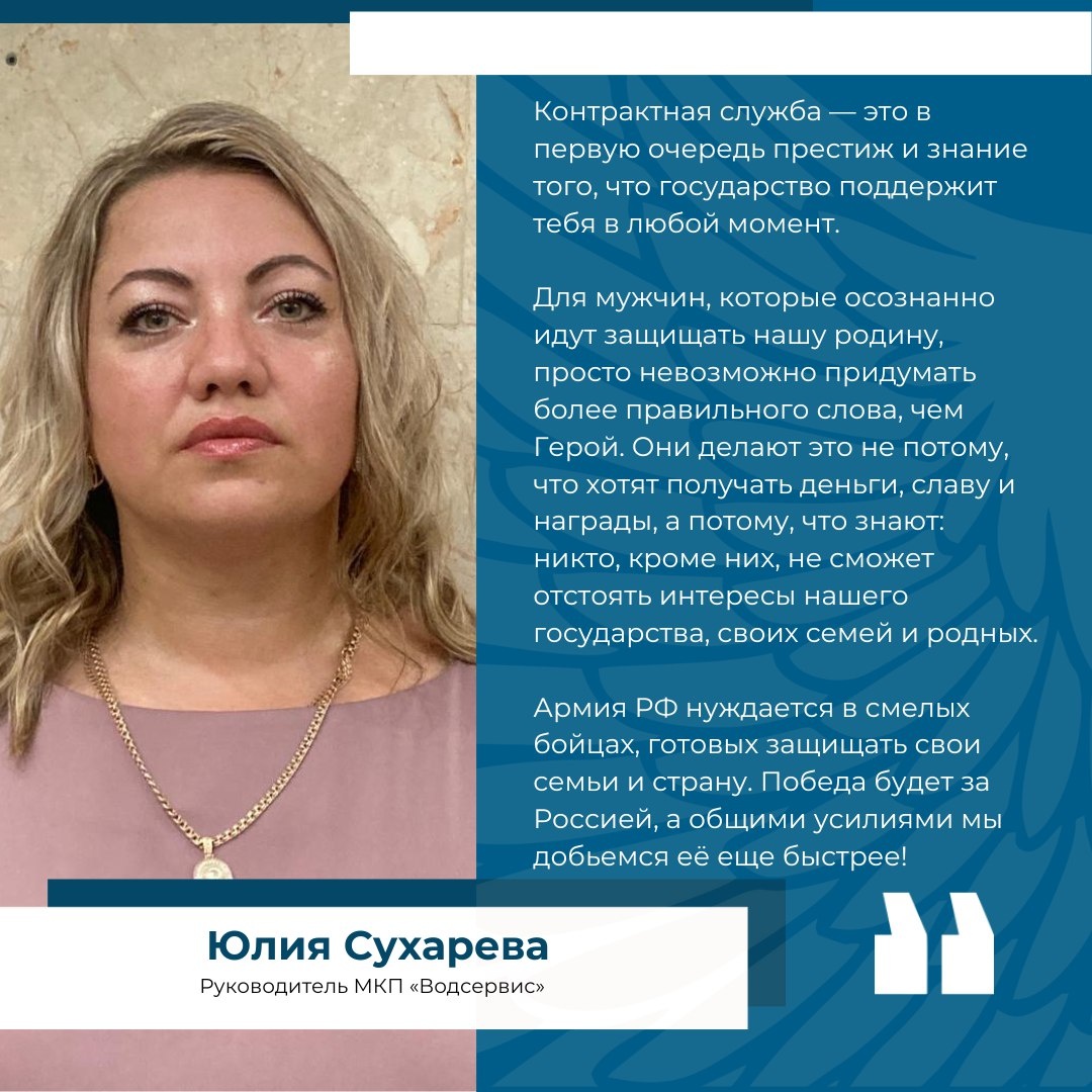 Юлия Сухарева, руководитель МКП «Водсервис». Если Вы желаете подписать контракт на военную службу, за подробностями обращайтесь в военный комиссариат Урицкого, Сосковского и Шаблыкинского районов: 📍 п. Нарышкино, ул. Микрорайон Строителей, д. 6 📞 8 (4864) 72-08-44 Областной пункт отбора на контрактную службу: 📍 г. Орел, ул. Октябрьская, д. 30 📞 8 (4862) 54-03-86 #ПобедаБудетЗаНами #СвоихНеБросаем #ЗаПрезидента #ZаРусскийМир
