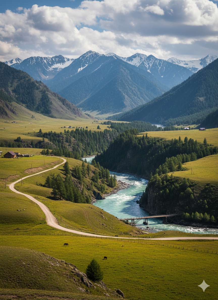 - Долина реки Чулышман (прямо у подножия перевала, с базами отдыха и джип-маршрутами).