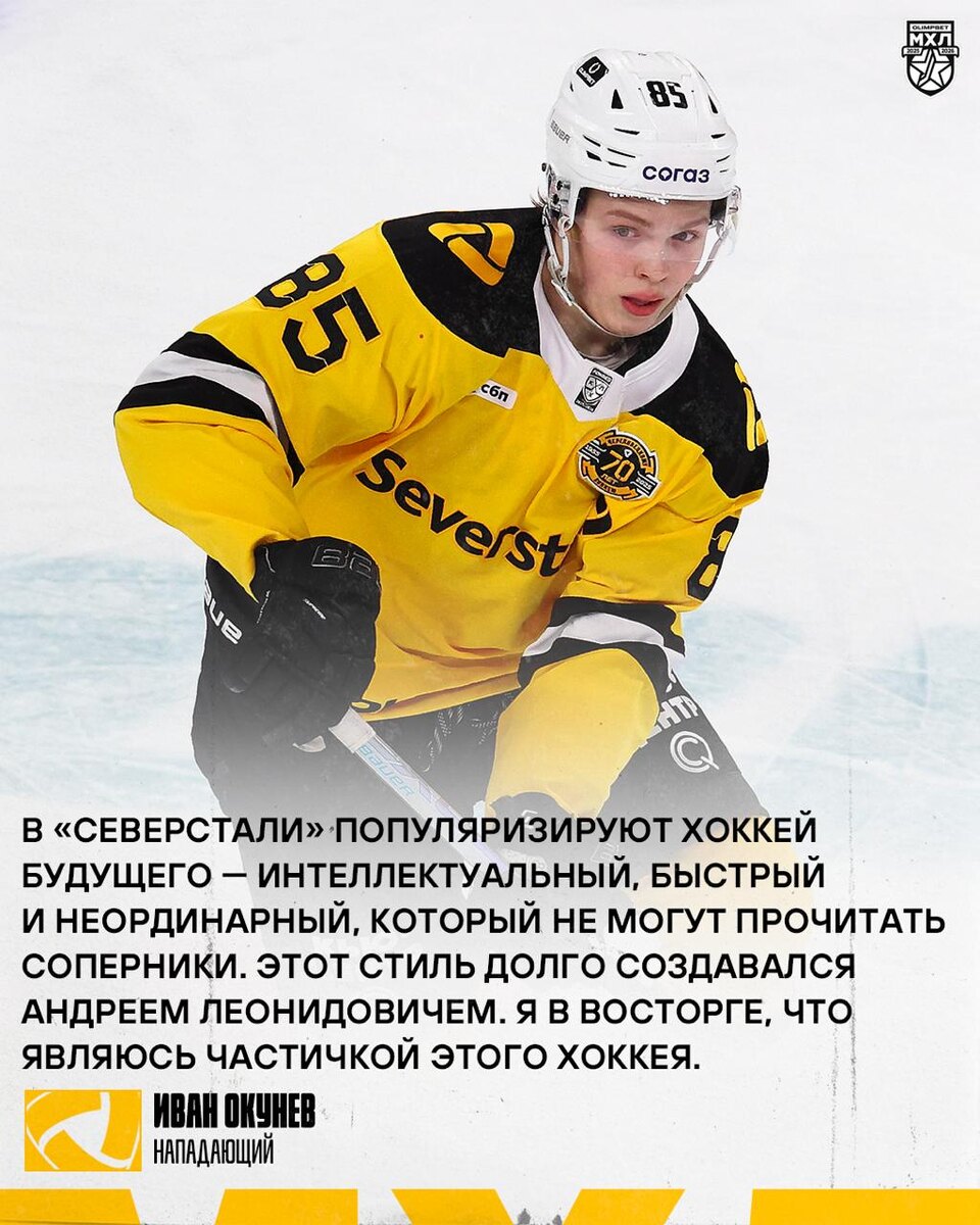 ». Иван Окунев 🟡 – о переходе из МХЛ в КХЛ, хоккее будущего и дружбе с Егором Суриным 25 января, в последний день дедлайна, Ивана Окунева обменяли в «Северсталь» на денежную компенсацию. Уже в четвёртом матче он получил 21 смену, сыграл в большинстве и набрал первое очко в КХЛ. В интервью Александру Петричу Иван Окунев рассказал о своём обмене, адаптации в первой команде, молодёжной карьере, учёбе и музыке. 🏒 @mhlrus