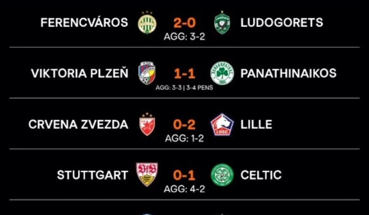 Прошлой ночью завершились восемь стыковых встреч во втором по статусу клубном турнире УЕФА - Лига Европы УЕФА. По их итогам сформирован окончательный состав из 16 команд, которые продолжат борьбу за трофей, передает Azattyq Rýhy. По результатам стыкового раунда путевки в 1/8 финала завоевали «Лилль», «Ноттингем Форест», «Штутгарт», «Болонья», «Ференцварош», «Панатинаикос», «Сельта» и «Генк». Ранее участие в этой стадии турнира обеспечили себе «Порту», «Брага», «Мидтьюлланд», «Бетис», «Рома», «Фрайбург», «Лион» и «Астон Вилла». Жеребьевка 1/8 финала состоится сегодня в штаб-квартире УЕФА в швейцарском Ньоне. Возможные пары соперников выглядят следующим образом: «Лилль» - «Астон Вилла» / «Лион», «Панатинаикос» - «Мидтьюлланд» / «Бетис», «Штутгарт» - «Брага» / «Порту», «Ференцварош» - «Порту» / «Брага», «Генк» - «Фрайбург» / «Рома», «Ноттингем Форест» - «Мидтьюлланд» / «Бетис», «Болонья» - «Фрайбург» / «Рома», «Сельта» - «Лион» / «Астон Вилла». Матчи 1/8 финала пройдут 12 и 19 марта. Фина