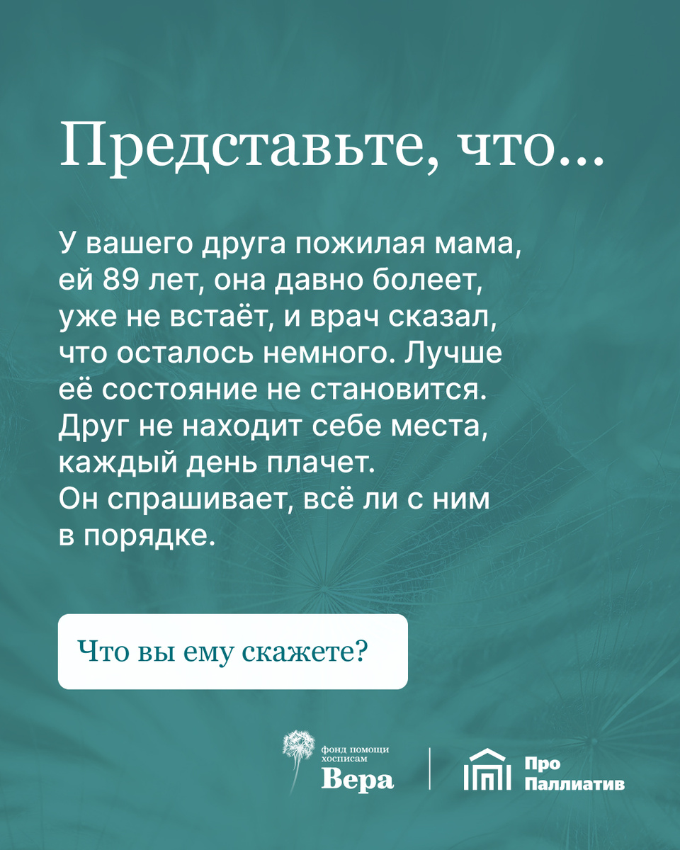Чем старше мы становимся, тем чаще оказываемся рядом с чужой болью. У коллеги умирает мама. Знакомый пишет, что у него онкология и надежд почти нет. Подруга теряет ребёнка. И нужно что-то сказать. Поддержать. Быть рядом. Но мы замираем. Пишем «держись». Или убеждаем, что всё ещё может измениться. Или начинаем рассказывать свою похожую историю — потому что так легче справиться с неловкостью. Иногда, по незнанию, наши слова могут ранить. Не потому что мы плохие, а потому что нас не учили быть рядом с горем. Сегодня предлагаем «примерить» на себя одну ситуацию. Как бы вы ответили? Выберите вариант — а позже мы разберём его вместе с психологом.