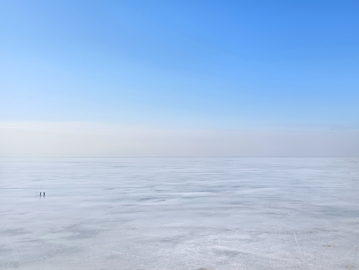 Я активно иду в сторону от берега, иду по непротоптанному снегу в направлении к пустынному горизонту, впереди никого. Но чуть сбоку есть и другие одиночки, они стоят или сидят как рыбаки, или медленно идут. А я выделяюсь, быстро иду "в никуда".