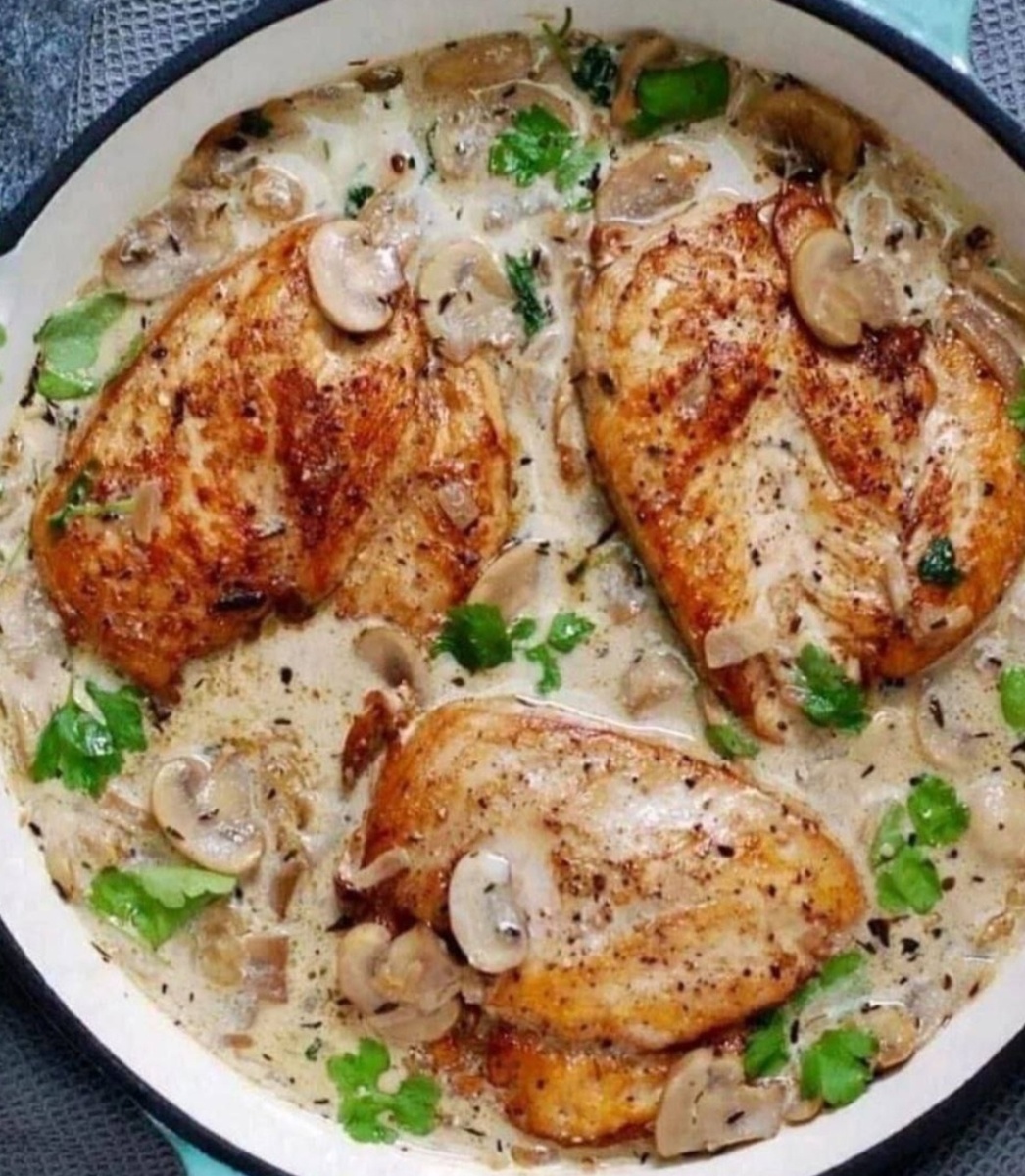 Куриная грудка с шампиньонами в сливочно-чесночном соусе