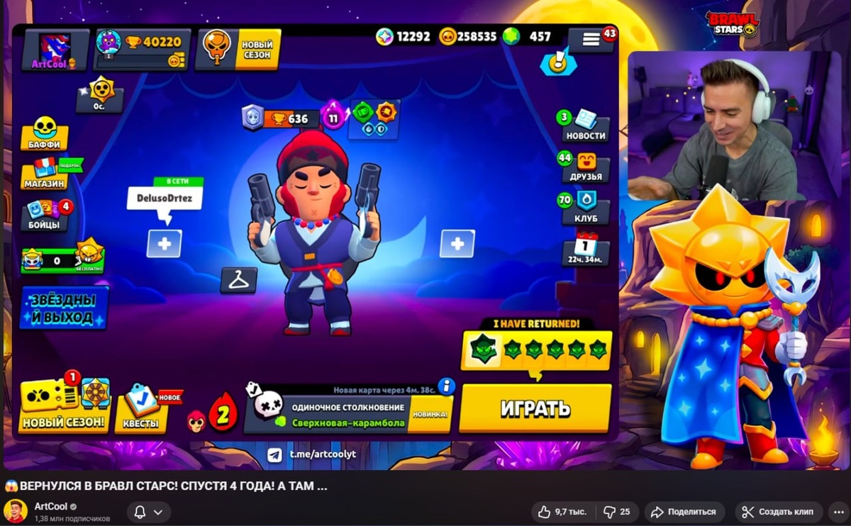 Все больше олдов возвращаются в игру после обновления, ArtCool не остался в стороне. Пиу-пиу-пиу тоже записал видос по Brawl Stars спустя долгое время.