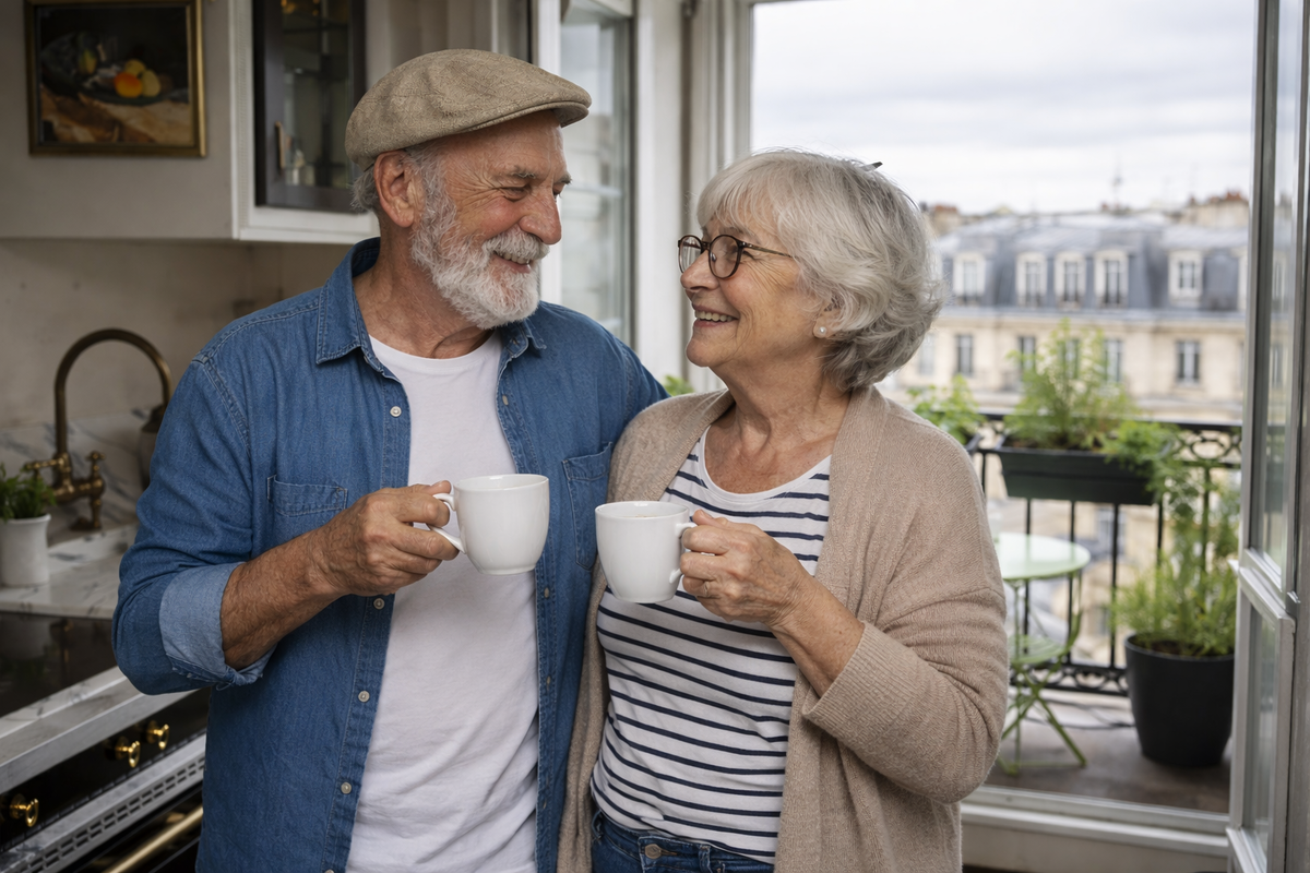 Во Франции многие пенсионеры продолжают жить в тех же квартирах, где прожили большую часть жизни. Типичная квартира пожилой пары в городе обычно имеет площадь 60–90 м² и располагается в доме середины XX века или в старом парижском доме с высокими потолками и большими окнами.