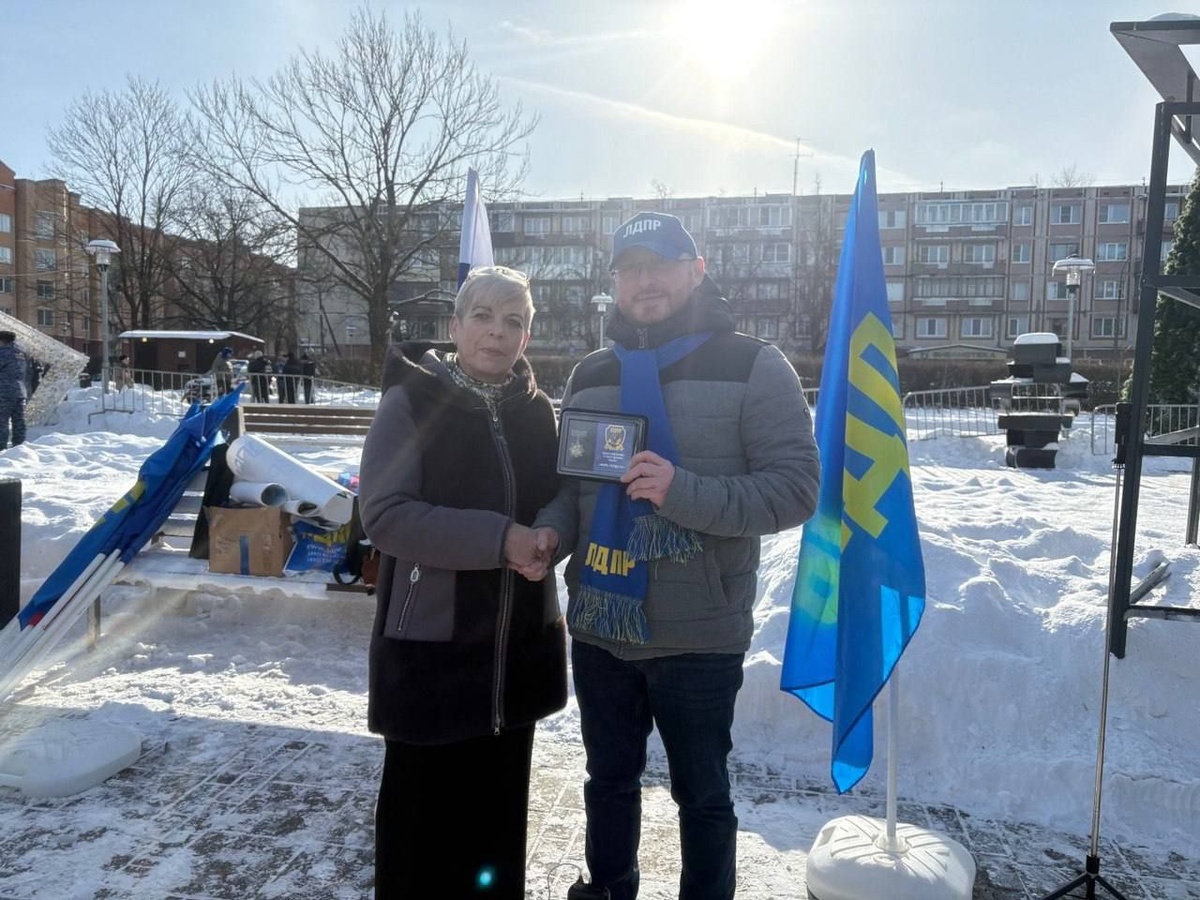 » Торжественная церемония вручения медали «Мать солдата» состоялась на митинге, посвящённом Дню защитника Отечества. Эта награда стала признанием заслуг женщин, воспитавших сыновей, проявивших храбрость и стойкость в боевых действиях в Чечне и специальной военной операции. 💬«Выражаю искреннюю благодарность за воспитание настоящих героев нашей Родины. Благодаря таким самоотверженным людям мы достигнем победы!» – отметил координатор Псковского регионального отделения ЛДПР Антон Минаков.