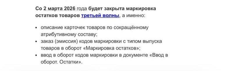 ‼️ Коллеги, тут на почту от ЧЗ пришла рассылка, что со 2 марта только отключат остатки. Но я бы не рисковал и не тянул ввод в оборот до 2/03. То есть получается до 1/03/2025 ВКЛЮЧИТЕЛЬНО по последней информации от ЧЗ. Уже сейчас максимально загружен ЧЗ и наблюдаются задержки в обработке заказов. Только через наш сервис MarkZnak.ru проходит сейчас больше 100 млн кодов в ДЕНЬ остатков. Это колоссальная нагрузка 🙈🙈🙈 Кто не успевает рассмотрите маркировку по короткому описанию 🙈