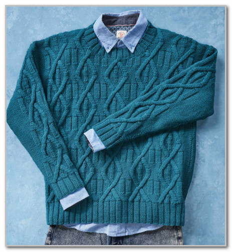 Этот изысканный пуловер представляет собой современный взгляд на классические узоры из кос. Этот дизайн украшен узором из ромбовидных кос в сочетании с графичными линиями и штрихами лицевой глади на фоне изнаночной глади.
