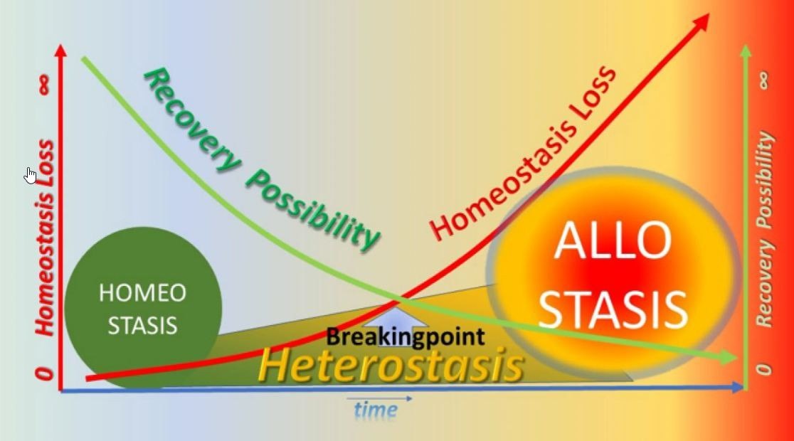 #2 Аллостатическая нагрузка - научная модель хронического напряжения Термин аллостатическая нагрузка описывает, что происходит, когда адаптивные реакции стресса запускаются снова и снова без достаточного времени на восстановление. Простая аналогия: стресс - как пожарная сигнализация. Если она срабатывает редко - это предупреждение и реакция заканчивается. Если она звучит постоянно - организм изнашивается. Универсальные реакции, которые нужны для кратких стрессов, становятся вредными, когда активируются долго: Поддерживается высокий уровень гормонов стресса. Повышается артериальное давление. Снижается репарация тканей. Нарушаются метаболические процессы. Изменяется работа нейронных сетей. Почему это важно? Такой постоянный "включённый режим" называется аллостатической нагрузкой. Это не просто "переживание". Это физиологическая перегрузка. Учёные оценивают аллостатическую нагрузку по нескольким биомаркерам: - уровень кортизола утром и вечером - вариабельность сердечного ритма - арте