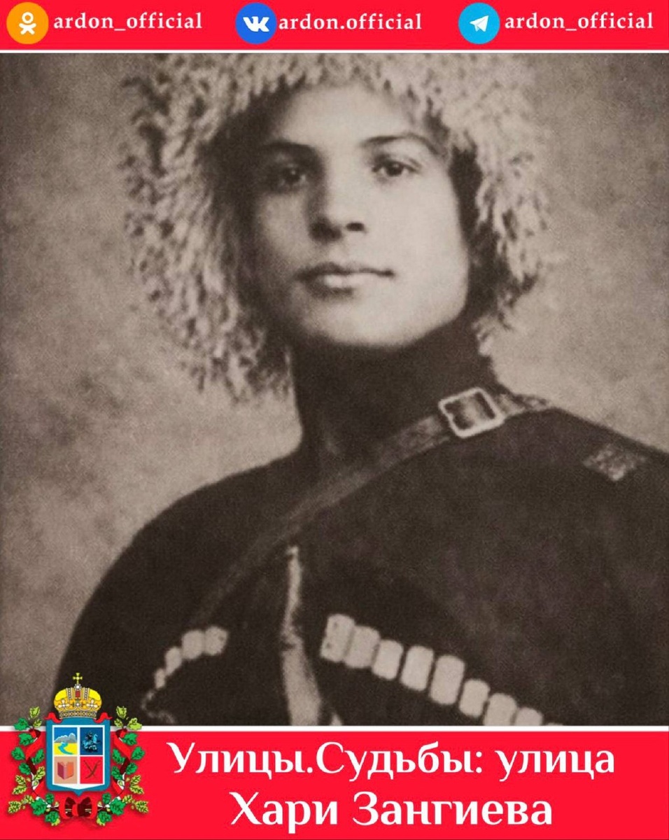 ». 📍Улица Хари Зангиева Одним из многих представителей осетинской молодежи, горячо приветствовавших революционные преобразования в Осетии, был Хари Васильевич Зангиев. Он был одним из первых организаторов и вожаков создания комсомольской организации в Ардонском районе. Его исключительная сила воли, жизнерадостность, природный ум, общительность, беспокойная и полная опасностей жизнь являлись примером для подражания. С июля 1920 г. по январь 1922 г. Зангиев - член Горского областного комитета партии, участник 1-й Терской областной конференции в селении Ардон. В 1920 году был делегатом 1-го Всекавказского краевого съезда комсомола. С 1922 г. по 1923 г. Хари Зангиев работал следователем прокуратуры Алагирско-Ардонского округа, а затем прокурором, вёл уголовные и гражданские дела. Не имея юридического образования, но обладая цепким умом, наблюдательностью, он добивался хороших результатов. Короткая, но яркая 30-летняя жизнь Хари Зангиева была горением во имя трудового народа, когда о