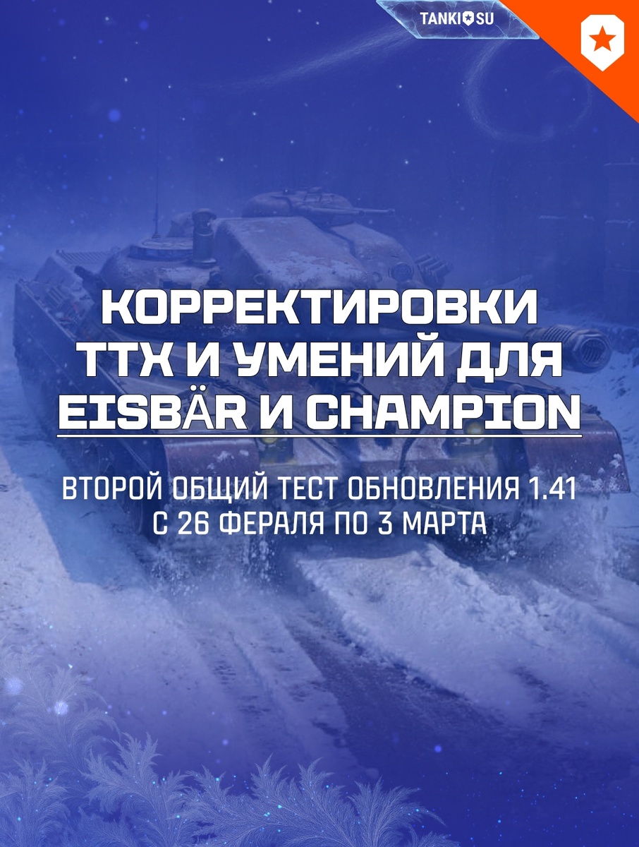 Разработчики вручили нерф-молоток по самым ярким машинам 11-го уровня. Разбираем, почему Eisbär больше не будет ронять с одного выстрела, а Champion лишился былой прыти. Пока одни игроки осваивают новые карты и режимы на общем тесте, другие внимательно вглядываются в циферки патчноута. И есть за чем следить. Два самых обсуждаемых танка XI уровня — немецкий Eisbär и британский Champion — получили серьёзные корректировки. Разработчики явно решили, что их «суперспособности» были слишком... ну, суперскими. Давайте разбираться, что порезали и как это повлияет на игру. Немецкий тяж запомнился своей уникальной модификацией: каждое пробитие повышает урон следующего выстрела и продлевает действие режима. Звучало как имба-машина для уничтожения всего живого. На тесте выяснили — так и есть. Поэтому медведя решили «притормозить». Что было (напоминание): Модификация работала как снежный ком — чем больше бьёшь, тем больнее бьёшь. Что стало: Плюс сам танк стал медленнее перезаряжаться: 8,6 с вместо 8