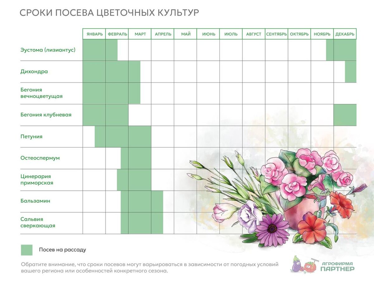 Мы подготовили удобную таблицу со сроками посева цветов, чтобы ваш сад радовал пышным цветением в сезон. ❗Важно: сроки могут варьироваться в зависимости от погодных условий и особенностей вашего региона. Всегда учитывайте климатические факторы! 🌸 Когда сеять? 1️⃣ Январь – февраль ⚪️ Эустома (лизиантус) ⚪️ Дихондра ⚪️ Бегония вечноцветущая ⚪️ Бегония клубневая ⚪️ Петуния (с середины января) 2️⃣ Февраль – март ⚪️ Остеоспермум (с конца февраля) ⚪️ Цинерария приморская (с середины февраля) ⚪️ Бальзамин (с конца февраля) ⚪️ Сальвия сверкающая (с конца февраля) ⚪️ Дельфиниум ⚪️ Виола 3️⃣ Март – апрель ⚪️ Цинния, алиссум, левкой ⚪️ Бархатцы, амарант ⚪️ Астра (калистефус, с конца марта) ⚪️ Георгина культурная ⚪️ Вербена ⚪️ Примула (до мая) 4️⃣ Круглогодичный посев ⚪️ Колеус ⚪️ Пеларгония 🌱 Посев безрассадным способом: ⚪️ Примула — апрель-май, вторая половина октября-ноябрь ⚪️ Дельфиниум — вторая половина апреля-август ⚪️ Виола — вторая половина апреля-май, вторая половина октября