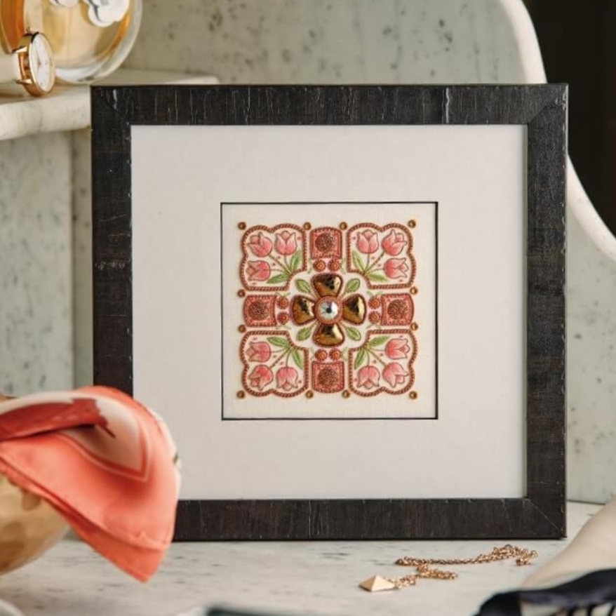Каждая отдельная панель — это мастерское исследование симметрии, металлических нитей и точности. Вместе они рассказывают богатую историю, в которой цвет, симметрия и тон ведут ненавязчивый диалог.