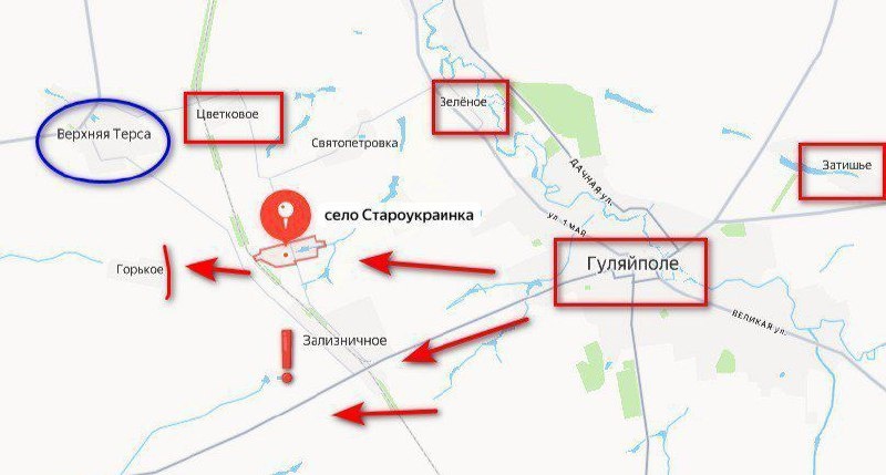 Наши продолжили продвигаться западнее Гуляйполя: русские штурмы́ уже действуют на окраинах Верхней Терсы и Горького.
