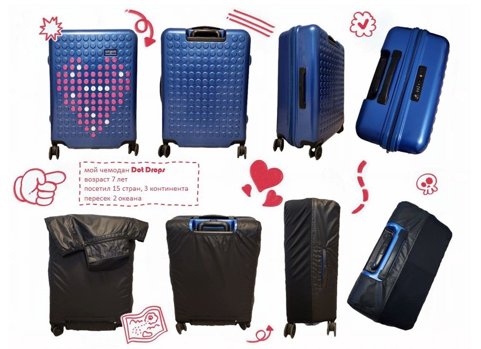 Мой чемодан французского бренда Dot Drops. Ему уже 7 лет, он объездил 15 стран, 3 континента, пересёк Атлантический и Индийский океаны, испытал всевозможные багажные ленты и аэропорты и всё ещё отлично себя чувствует. Рассказываю, как ему удается оставаться таким красавчиком, и что нужно учесть при покупке чемодана. 1️⃣Материал — поликарбонат Выбирайте чемодан только из поликарбоната. На нём скорее появятся вмятины, но никак не трещины, как в случае ABS-пластика. И этот материал легче алюминия. 2️⃣Колёса — лучше съёмные У моего чемодана крепкие и надёжные 4 колеса, но они не снимаются. Каждый раз я очень переживаю, что мне эти колеса сломают, поэтому лучше брать модели со съёмными колёсами. 3️⃣USB-разъём для зарядки — скорее минус Мой чемодан имеет USB-разъём для зарядки гаджетов, но на практике я им пользовалась пару раз. Сдавать пауэрбанки или чемоданы со встроенным аккумулятором в багаж запрещено, поэтому зарядить телефон таким способом в полёте не получится. Функция зарядки подх