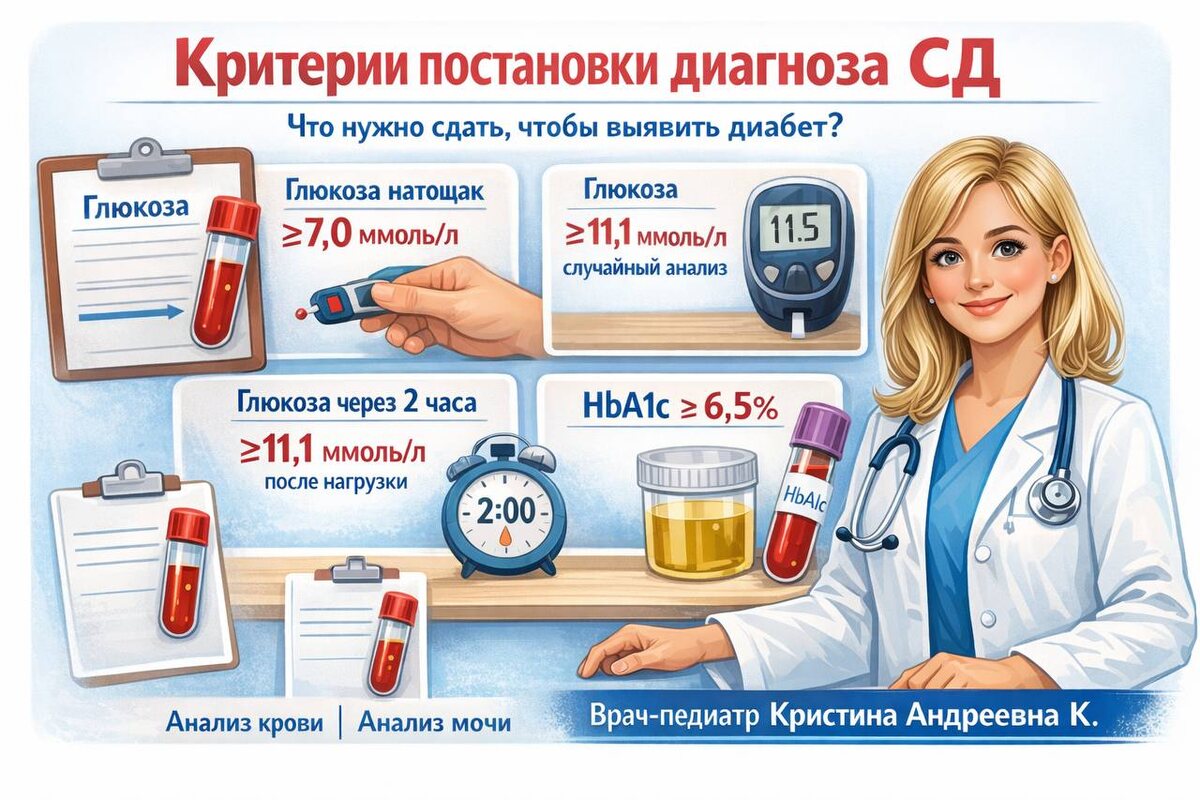 В своей практике я выявила несколько детей с дебютом сахарного диабета. Чаще всего картина начинается классически: ребенок много пьет, много мочится, худеет при хорошем или даже повышенном аппетите. К сожалению, родители нередко воспринимают это как «цистит», «невроз», «проблемы с почками» — но не как возможный диабет. Однажды удалось выявить ребенка буквально «на старте»: глюкоза крови уже была 7–8 ммоль/л, но выраженной клиники еще не было. Мы оперативно направили его в областной центр и предотвратили развитие кетоацидоза. ❓Что такое сахарный диабет ➡️Сахарный диабет — это хроническое эндокринное заболевание, характеризующееся стойкой гипергликемией (повышением уровня глюкозы в крови). Согласно рекомендациям выделяют несколько типов диабета, но основными являются: ➡️СД 1 типа — аутоиммунное разрушение β-клеток поджелудочной железы с абсолютной недостаточностью инсулина ➡️СД 2 типа —инсулинорезистентность и относительный дефицит инсулина У детей раннего и подросткового возраста пр