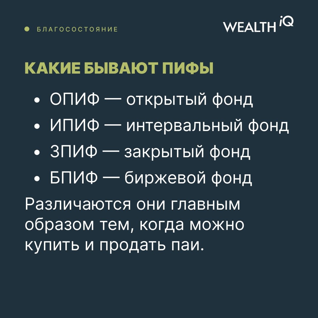 Если вы инвестируете в России или структурируете свой капитал, то явно сталкиваетесь с рядом похожих аббревиатур: ПИФ, ЗПИФ, БПИФ, ИПИФ. Все они обозначают одну большую категорию паевых инвестиционных фондов. Говоря простым языком, ПИФ — это «общий кошелек», куда инвесторы складывают деньги, а управляющая компания инвестирует их в разные активы: недвижимость, акции, облигации или что-то еще. Каждый инвестор получает пай — долю в этом фонде. Работу фондов в России регулирует Центробанк, а многие фонды торгуются на Московской бирже. Подробно, но максимально понятно мы попросили рассказать о них специалиста из дружеского канала о ЗПИФах Евгения Воронина @vsezpif. Читайте в карточках. #инвестиции #wealth 🏦 @wealth_iqs