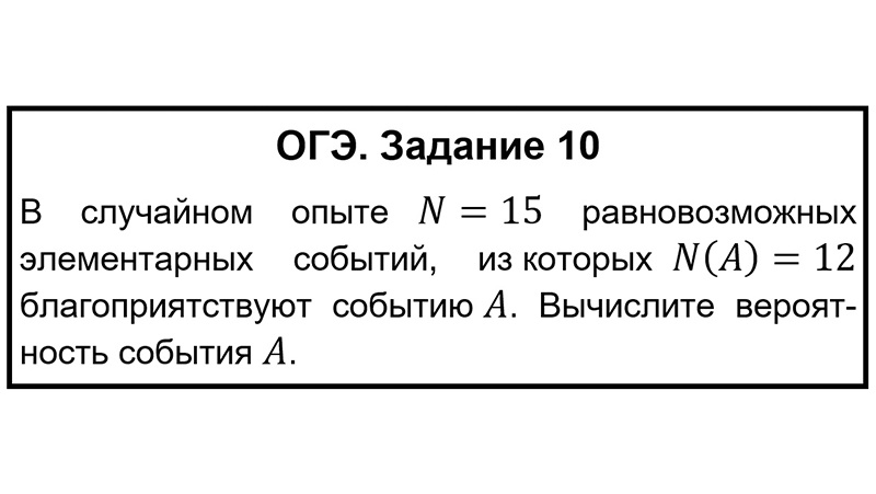 Разбираем свежую задачу на вероятность — именно такие встретятся вам на экзамене в 2026 году. Если вы готовитесь к ОГЭ или помогаете готовиться ребёнку, вы знаете: задания из банка ФИПИ — это золотой стандарт. Именно они попадутся на реальном экзамене. Сегодня разбираем одно из новых заданий на вероятность. Оно простое, но в нём скрывается важный нюанс, который понимают не все. Поехали! В случайном опыте N = 15 равновозможных элементарных событий, из которых N(A) = 12 благоприятствуют событию A. Вычислите вероятность события A. Казалось бы, ничего сложного. Но давайте разберём каждое слово, чтобы больше никогда не ошибаться в таких задачах. Вероятность события A вычисляется по формуле: P(A) = N(A) / N где:
