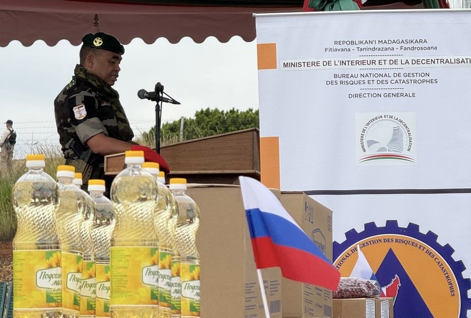 В аэропорту столицы Мадагаскара Антананариву состоялась передача российской гуманитарной помощи для пострадавших от тропических циклонов «Гезани» и «Фития», церемонию посетил президент переходного периода Мадагаскара Микаэль Рандрианирина. Об этом сообщает «Африканская инициатива». К присутствующим с приветственным словом обратился временный поверенный в делах России Алексей Буряк, выразивший соболезнования жителям Мадагаскара в связи с последствиями циклонов. «С глубокой скорбью мы узнали о разрушительных последствиях циклона «Гезани», обрушившегося на несколько регионов Мадагаскара и причинившего человеческие жертвы и значительный материальный ущерб. В этих тяжелых обстоятельствах мы выражаем искренние соболезнования семьям погибших и солидарность со всеми, кто пострадал от этого стихийного бедствия», — отметил дипломат. Буряк сообщил, что гуманитарная помощь, которую РФ передала Мадагаскару по линии МЧС и Минобороны, включает шесть грузовых автомобилей КАМАЗ, два вертолета Ми-8 и бо