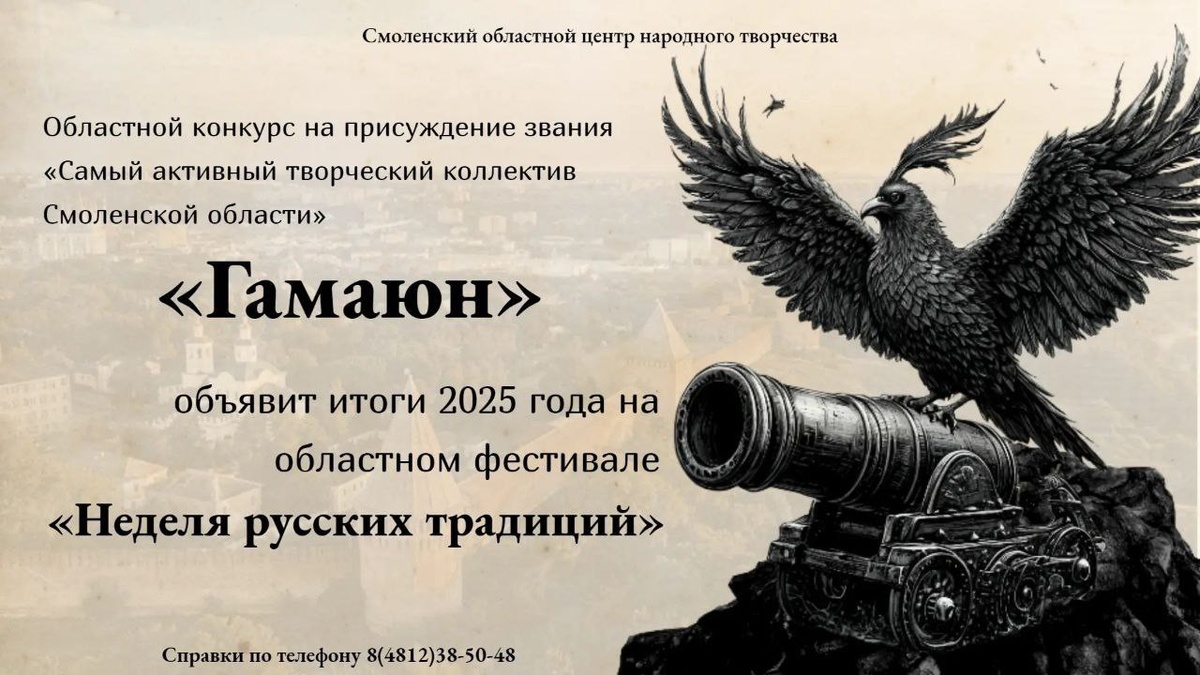 »? ❗️Подведены итоги регионального конкурса «Гамаюн». 📍Напомним, на протяжении прошлого года творческие коллективы нашей области боролись за это почетное звание: активно участвовали в мероприятиях, обогащали культурную жизнь и вносили весомый вклад в сохранение и развитие народного творчества региона. 🤫Сохраняем интригу: имя победителя будет торжественно объявлено на фестивале «Неделя русских традиций», который пройдет с 13 по 17 июля. 🤗Оставайтесь с нами — скоро сообщим дату и место церемонии награждения! #СамыйАктивныйКоллектив #Гамаюн #Конкурс #ТворческиеКоллективы #СмоленскаяОбласть #НеделяРусскихТрадиций #СмоленскийЦентрНародногоТворчества
