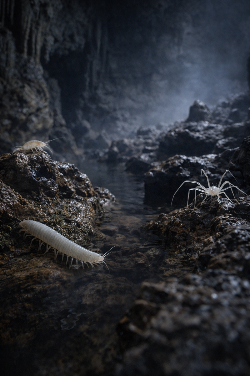 Полная изоляция от света постепенно трансформирует живые существа. У многих обитателей пещеры отсутствуют глаза или они рудиментарны. Зрение в условиях абсолютной темноты теряет смысл. Зато усиливаются другие органы чувств. Усики и рецепторы становятся длиннее и чувствительнее.