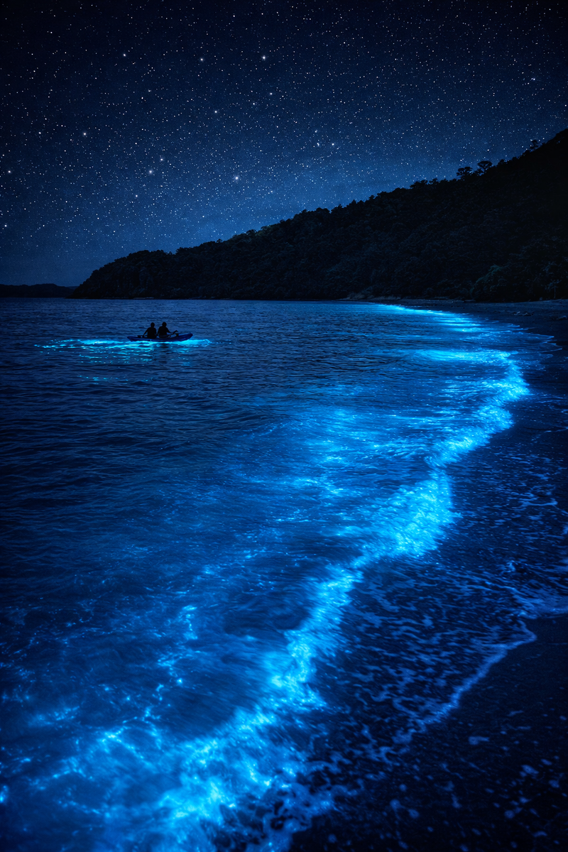 Озеро, которое светится ночью, — это пример того, как микроскопическая жизнь способна создавать масштабное зрелище. Миллионы динофлагеллятов реагируют на движение, превращая воду в сияющее полотно. Эффект зависит от хрупкого баланса температуры и чистоты среды. Он не связан с магией, но всё равно выглядит фантастически. И именно эта естественная химия делает светящиеся лагуны одними из самых необычных явлений планеты.