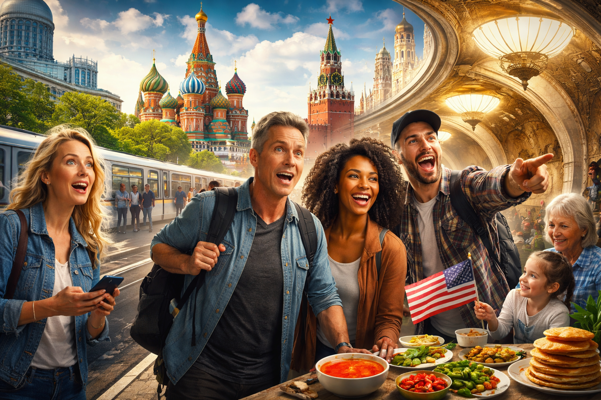 «В России страшно, мрачно и всё разваливается» — примерно с таким багажом представлений прилетела в Москву группа американских туристов из Калифорнии, Техаса, Флориды и Нью‑Йорка. Они честно признавались: родные отговаривали, коллеги крутили пальцем у виска, а новостные каналы рисовали картину почти из антиутопии. Уже через сутки после прилёта один из них сказал фразу, которая многое объясняет: «Кажется, нас просто неправильно информировали».