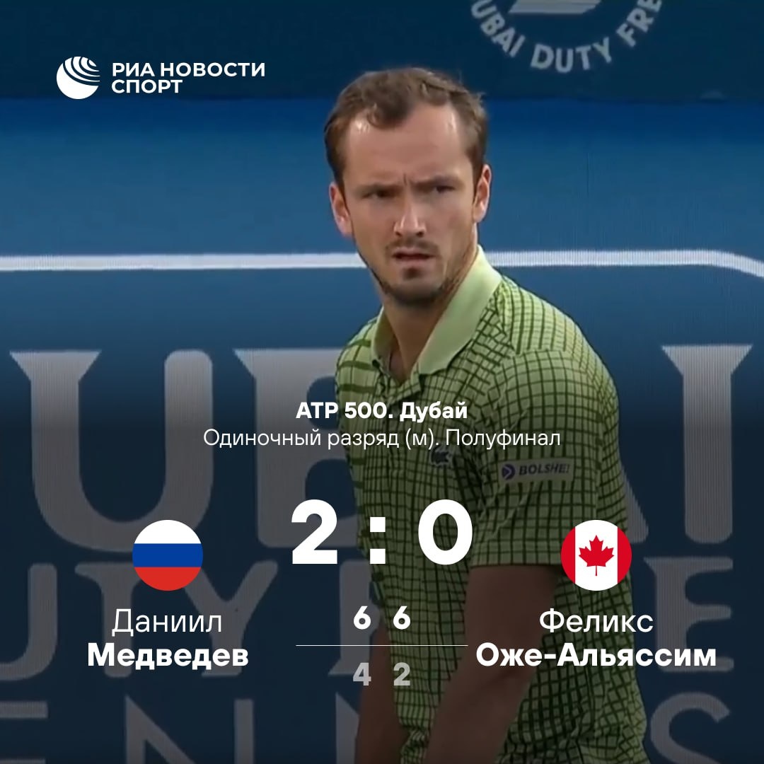 Привет, друзья! Даниил Медведев вышел в финал турнира в Дубае, обыграв канадца Феликса Оже-Альяссима за 1 час 23 минуты. Это впечатляющий результат, который показывает высокий уровень игры российского теннисиста. В финале Медведев встретится с одним из двух соперников: соотечественником Андреем Рублёвым или нидерландцем Таллоном Грикспором. Оба теннисиста — серьёзные соперники, и матч обещает быть напряжённым и интересным. Этот финал особенно значим для российских болельщиков, которые увидят в решающей игре представителя своей страны. Интересно, кто из них станет чемпионом? Будем следить за развитием событий и болеть за наших ребят!