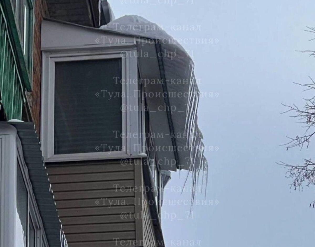 В Пролетарском районе Тулы жильцы обеспокоены висящей глыбой снега