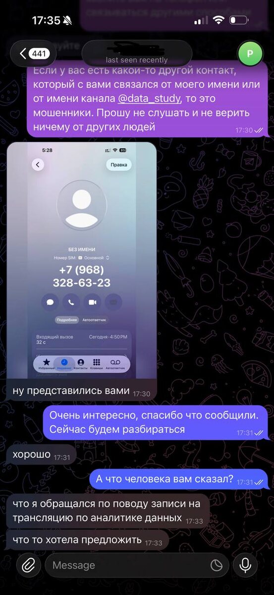 Это не я и у меня нет других людей, кто будет вам звонить от меня или от имени канала. Пожалуйста, не ведитесь, ничему не верьте. Все мои контактные данные указаны в профиле канала. Я могу написать сам лично только в ответ на вашу заявку, либо вы мне сами можете написать. всех обнял и хорошего вечера пятницы Кто я | Навигация | Обучение