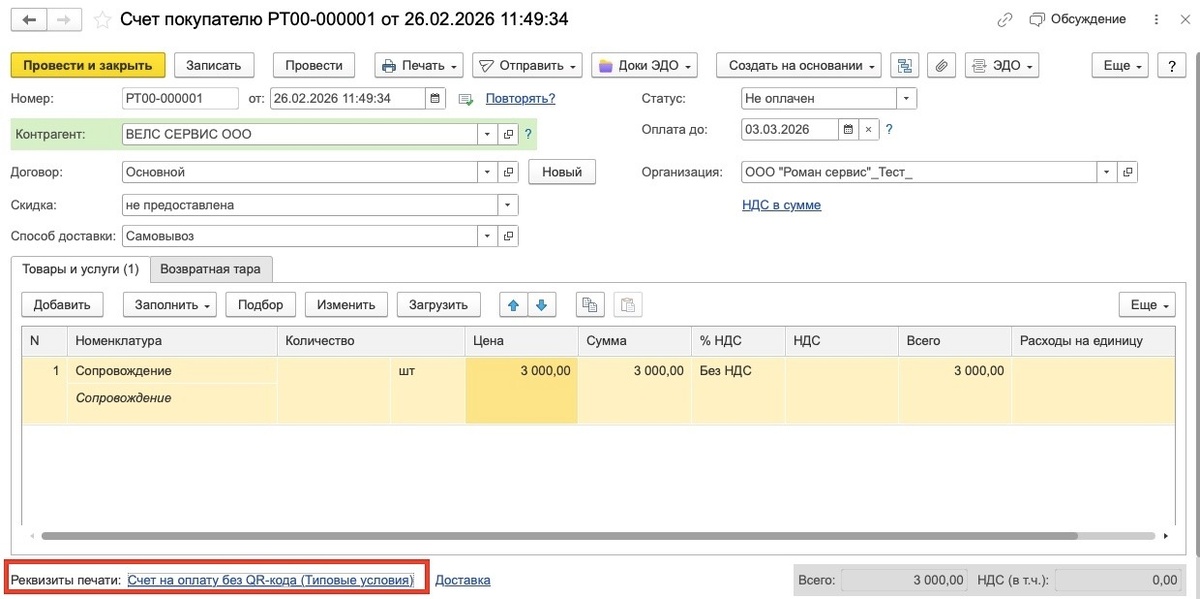 В 1С:БП счет-оферта или счет-договор формируется не отдельной печатной формой, а за счет изменения заголовка в реквизитах печати документа Счет покупателю. Такой способ позволяет: Для того, чтобы вывести на печать счет-оферту или счет-договор, откройте счет покупателю. Перейдите в раздел Продажи - Счета покупателям. Создайте новый документ или откройте уже существующий. Заполните: контрагента, договор, товары или услуги, сумму. Далее откройте реквизиты печати. В нижней части документа найдите ссылку Реквизиты печати (она расположена под табличной частью счета). Нажмите на неё. В открывшемся окне найдите поле Заголовок. По умолчанию там указано Счет на оплату. Измените его, например, на Счет-оферта или Счет-договор. При необходимости можно дополнительно заполнить текст условий оплаты или другие поля, если они предусмотрены формой. После внесённых правок сохраните изменения (нажмите на ОК). Далее сохраните и проведите документ. Выведите документ на печать. Нажмите кнопку Печать - выбери