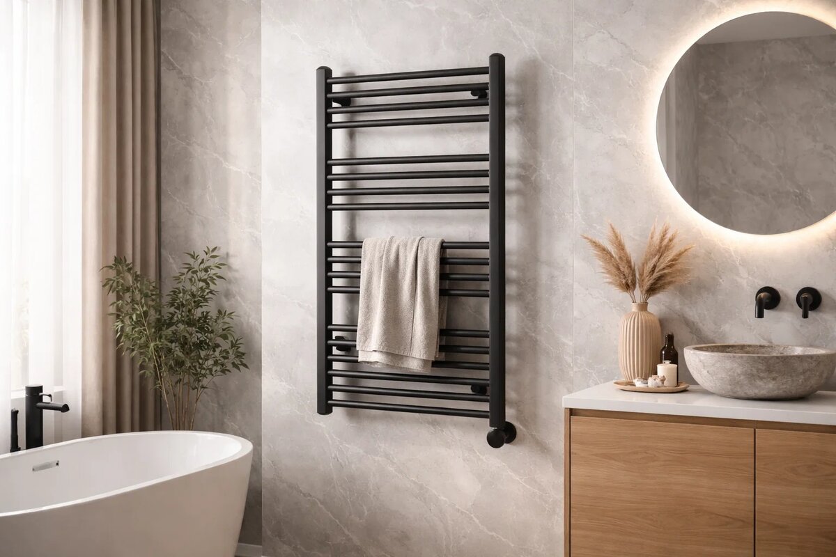 Чёрные электрические полотенцесушители всё чаще появляются в современных ванных комнатах и воспринимаются как полноценный элемент интерьера, а не просто утилитарный прибор. Они хорошо сочетаются с тёмной сантехникой, контрастной плиткой и минималистичными решениями. При этом у многих возникает сомнение, насколько такой выбор оправдан с точки зрения практичности и ухода.