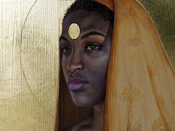 ) Сара Голиш — современная художница из Торонто, известная своими детализированными фигуративными рисунками и живописью. В своих работах она часто исследует темы африканской культуры и красоты. Картины выполнены маслом с использованием сусального золота на деревянной панели в стиле магического реализма и афрофутуризма.