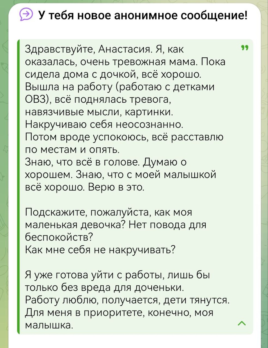 Нужно помнить, что реальность создаем мы сами своими и страхами в том числе. Когда ваш ребенок не в вашем поле, а гуляет с близкими, в саду или в поездке, то меняйте негативные образы о ней на позитивные. Что у нее все хорошо, она в безопасности, любви. Посылайте любовь на расстоянии. Для любви нет границ. И когда вы рядом с ребенком, давайте регулярно качественное внимание, включенность, тогда ребенок добирает энергию за время отлучки. Быть самостоятельным-тоже важный навык. А какой выбрать график, чтобы вам обеим было комфортно - ваш выбор. Мы все-таки рождены и проводим детей в этот мир не за тем, чтобы вкалывать, а чтобы быть счастливыми, реализовываться, что-то ценное делать для этого мира, раскрыть свою суть. Все ответы - в вас, переключайте фокус с тревоги на дыхание, на настоящий момент, учитесь быть в состоянии Духа, целостной. Этим мы занимаемся в новом нашем Сообществе Аура