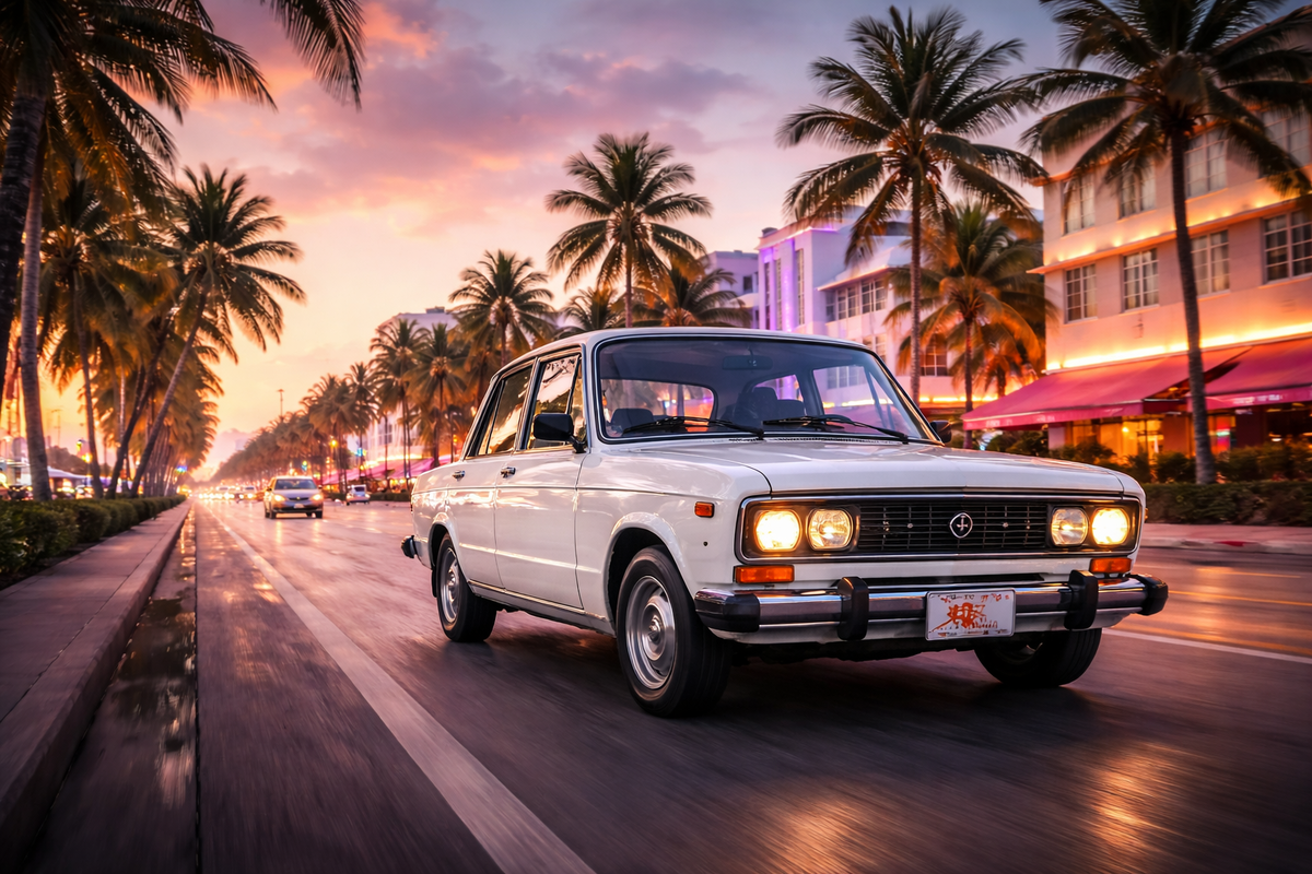 В солнечном Майами легко представить кабриолет с опущенной крышей, хром, который слепит глаза, и ленивый океанский ветер. Но попробуйте заменить эту картинку: по набережной едут советские автомобили, а прохожие оборачиваются и снимают их на телефоны. Звучит как парадокс, но именно они неожиданно стали частью городской экзотики южной Флориды. Мода на машины из СССР в Майами не возникла внезапно и не была массовым трендом. Это скорее нишевое увлечение, выросшее на стыке эмигрантской ностальгии, автомобильной экзотики и любви американцев к редким моделям. Началось всё в 2000-х годах, когда в США стали активнее ввозить необычные автомобили из Европы, в том числе из стран бывшего СССР. Закон о 25-летнем возрасте автомобиля, позволяющий импортировать машины без строгой сертификации, сыграл свою роль: модели 1970-80-х годов получили шанс официально оказаться на американских дорогах. Отдельную роль сыграло русскоязычное население Южной Флориды. В районе Санни-Айлс-Бич, который часто называют «