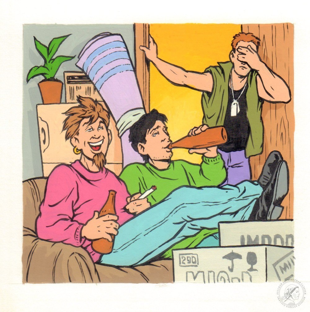 Сайт: rus-gal.ru #Лесников В. #Комикс «#Вечеринка» #Россия, 2000-е годы. Бумага, смешанная техника. 12 Х 12,4 см #Комикс #Современная_графика Подробнее https://rus-gal.ru/works/chernovik-7721/