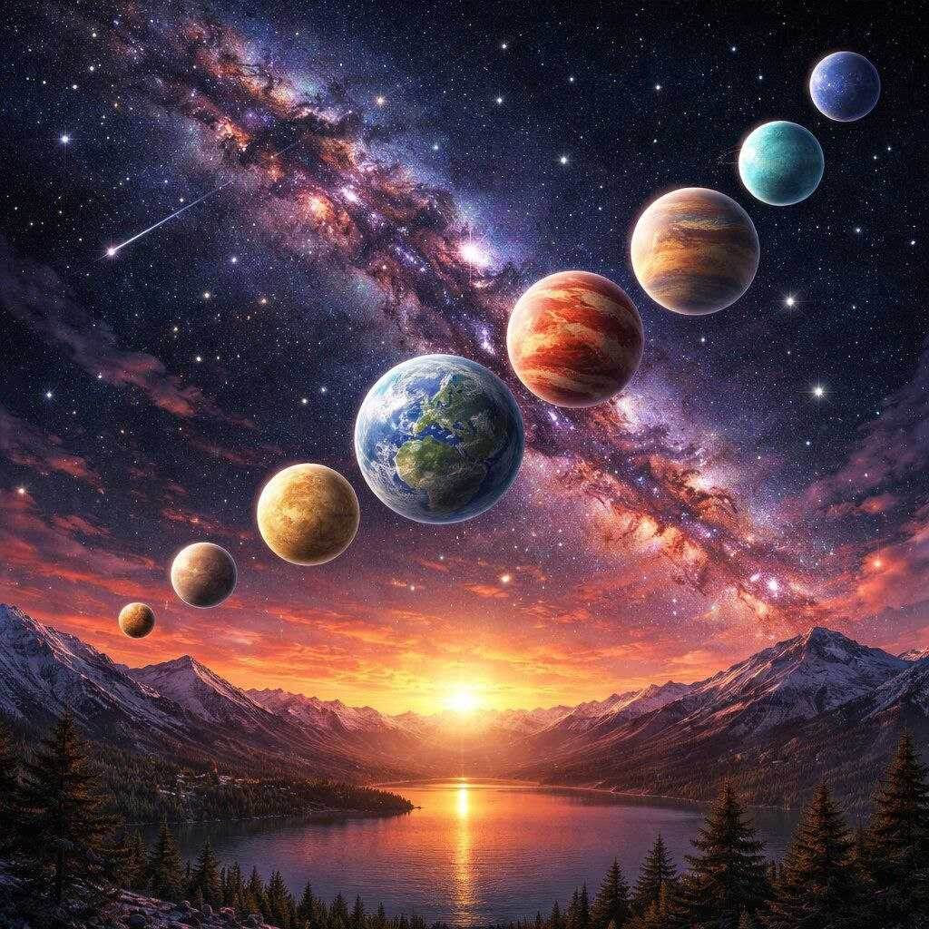28 февраля 2026 года после заката Солнца состоится парад планет! Это явление астрономическое, при котором несколько планет Солнечной системы оказываются по одну сторону от Солнца в относительно небольшом секторе и, с точки зрения земного наблюдателя, появляются на ночном небе близко друг к другу. При благоприятных погодных условиях - это редкое и завораживающее зрелище. Но на самом деле, в космосе планеты не выстраиваются в идеальную линию, как солдаты на параде. Это оптический эффект: находясь на Земле, мы так видим их проекции на небесную сферу. Для человека без телескопа это выглядит, как несколько ярких «звезд», выстроившихся в одну линию (примерно по траектории движения Солнца — эклиптике). Астрономы обычно используют термин «выравнивание планет», а само явление делят на типы в зависимости от количества участников и их видимости: 1. Мини-парад: Участвуют 3 планеты. 2. Малый парад: Участвуют 4 планеты. 3. Большой парад: Участвуют 5 или 6 планет. 4. Полный (Великий) парад: Участвую